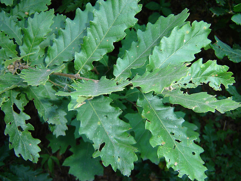 Krošnja je gusta, tamna, širokočunjastog oblika. Pupoljci su dosta sitni sa brojnim sitnim, usko jezičastim listićima pri osnovi, dugim 2 cm i karakterističnim za cer. Listovi su pojedinačni, naizmjenično raspoređeni. Varijabilnog su oblika, obično dugi 8-14 cm i široki do 8 cm, sa 7-8 pari režnjeva cijelog ili nepravilno nazubljenog oboda. Odrastao list je nježno kožast, s lica sjajan, intenzivne zelene boje, s naličja svjetliji i blago maljav, naročito oko nerava. Peteljka je duga 0,5-2,5 cm. Lista nešto kasnije od lužnjaka, krajem aprila i tokom maja. Listovi ostaju na granama do kasno u jesen.
